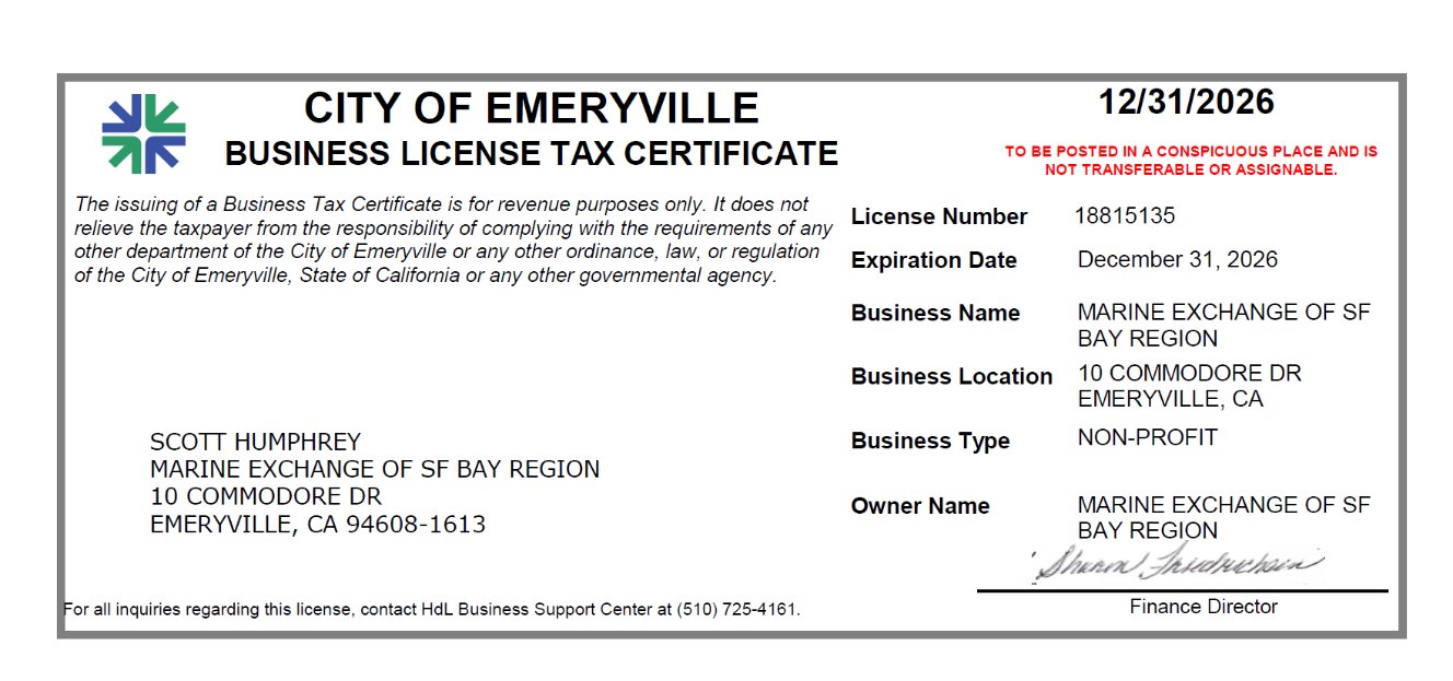 City of Emeryville Business License Tax Certificate